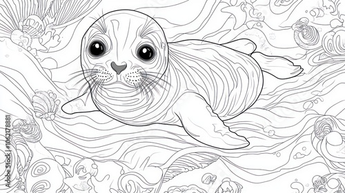 Fototapeta premium A Detailed Line Drawing of a Seal Pup Swimming in the Ocean