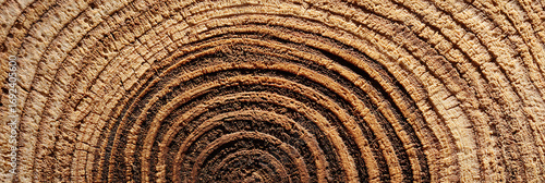 © Strother, Fototapeta premium A detailed macro, close-up of the concentric growth rings in a cross-section of a tree trunk. A natural and rustic wood grain texture background.