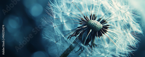 © alexandre, Obraz premium A detailed macro photograph of a dandelion head with its white seeds ready to disperse