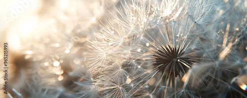 © alexandre, Obraz premium A detailed macro photograph of a dandelion head with its white seeds ready to disperse