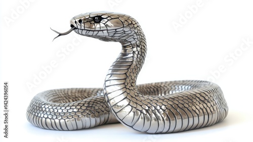 © Hungarian, Naklejka premium A detailed, metallic silver snake with intricate scales.