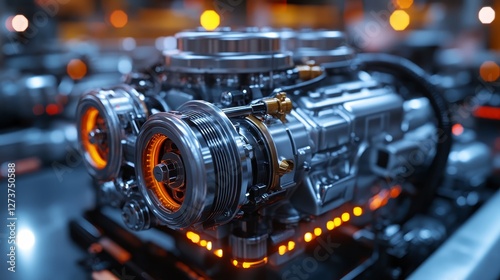 Fototapeta premium A detailed overview of the high-performance engine demonstrates the complex...