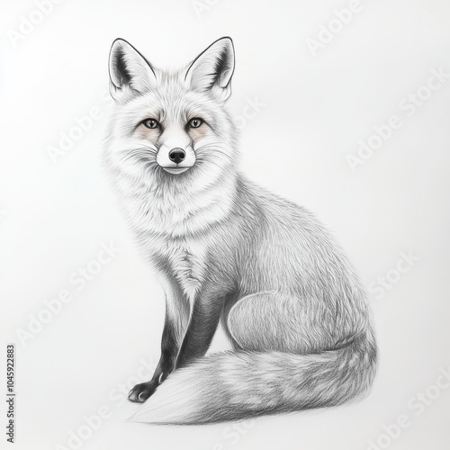 © Adames Art Studio, Obraz premium A detailed pencil drawing of a fox sitting on a white background.