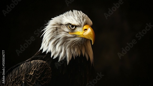 © andryan, Obraz premium A detailed portrait depicts a majestic bald eagle against a dark backdrop