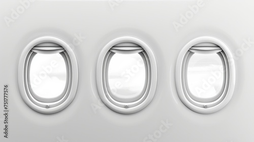 Fototapeta premium A detailed representation of three realistic airplane portholes made of white...