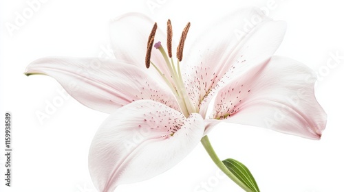 © ArpPSIqee, Naklejka premium A detailed shot of a pale pink lily with its delicate, open blooms and soft color, isolated white background