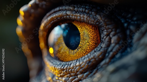 Fototapeta premium A detailed shot of an animal's eye, displaying vibrant yellow and blue irises