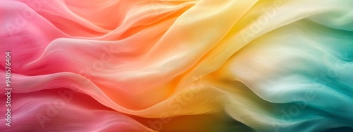 Obraz premium A detailed shot of multi-hued fabric, featuring an expansive wave-like layer...