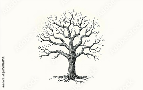 Fototapeta premium A detailed sketch of a barren tree with intricate branches, emphasizing its...