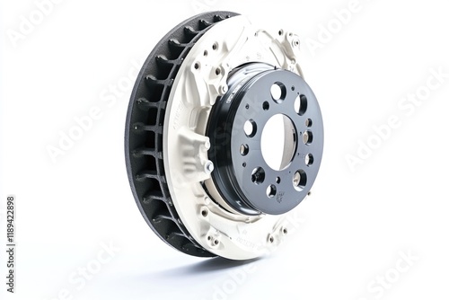© Vii, Obraz premium A detailed view of a brake disc on a clean white background