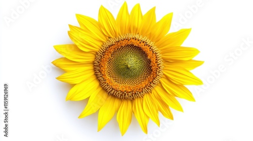 © ArpPSIqee, Fototapeta premium A detailed view of a bright yellow sunflower with intricate details in the center, isolated white background, minimalistic art style