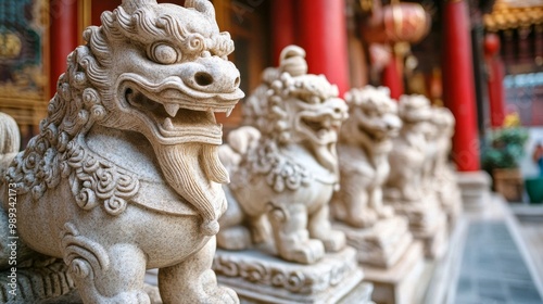 © EmmaStock, Fototapeta premium A detailed view of a Chinese zodiac sculpture in a temple courtyard, with each animal carefully carved in stone,