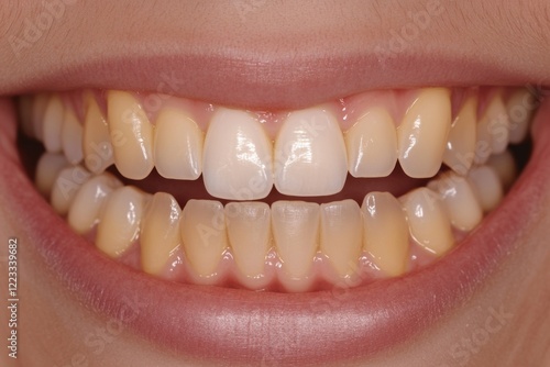 © Ева Поликарпова, Fototapeta premium A detailed view of a person's mouth showing a gap where a tooth is missing, useful for medical or dental-related illustrations