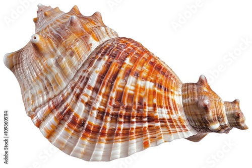 Fototapeta premium A detailed view of a seashell's surface on a clean white background, perfect...