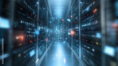 Fototapeta premium A detailed view of a server room showcasing multiple rows of servers,...
