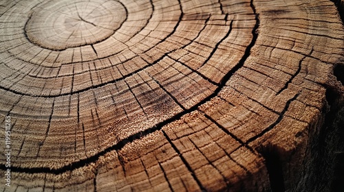 Fototapeta premium A detailed view of a tree trunk section showcasing annual growth rings.