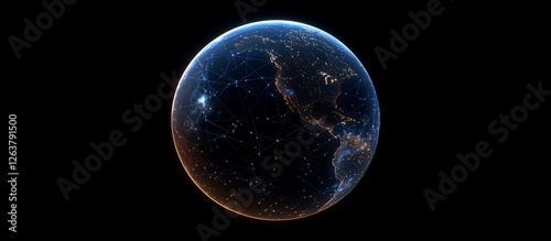 Obraz premium A detailed view of Earth illuminated by city lights, showcasing global connectivity at night