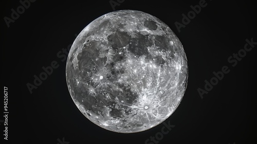 © kinara art design, Obraz premium A detailed view of the full moon against a dark background.