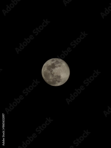 © ErrorX 4, Fototapeta premium A detailed view of the full moon shining brightly against a dark night sky with no other celestial objects visible