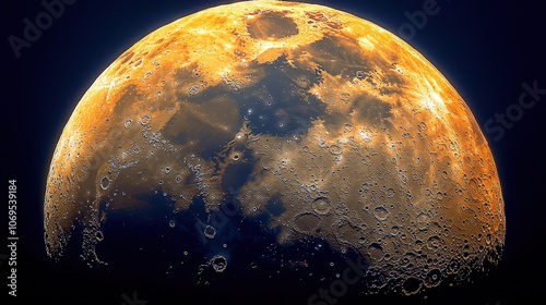 © Iurii, Fototapeta premium A detailed view of the moon's surface illuminated during the night sky