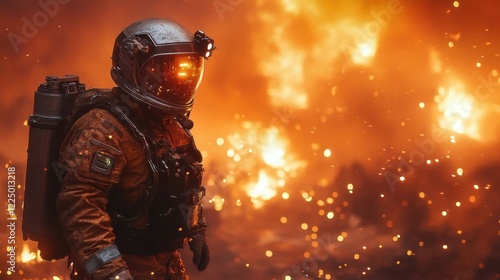 © Vladimir, Fototapeta premium A determined rescue worker in flames.