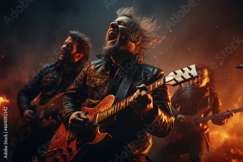 Naklejka premium A determined rock band performing with passion and energy to a cheering...