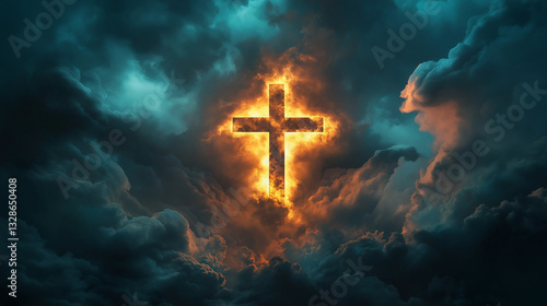 Fototapeta premium A devoted person kneels in prayer, bathed in golden light, surrounded by...