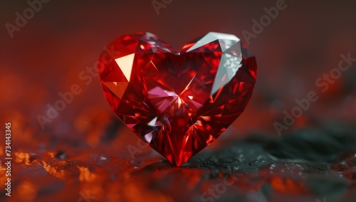 © SKIMP Art, Fototapeta premium a diamond heart shaped red sapphire Generative AI