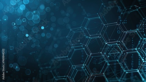 Obraz premium A digital abstract design featuring interconnected hexagons and glowing...