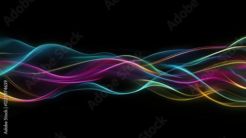 © WITTAYA ANGMUJCHA, Naklejka premium A digital abstract neon striped background featuring glowing light trails with smooth motion effects and radiant color blending