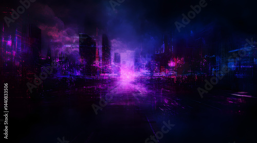 © Fonlinepix, Naklejka premium A digital art composition using glitchy textures and neon accents to symbolize the digital disruptions in modern society.