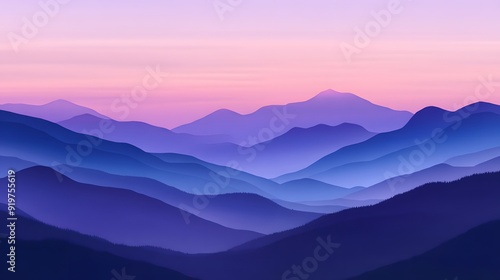 Obraz premium A digital art of mountains at dusk, with gradients from deep purple to pink...