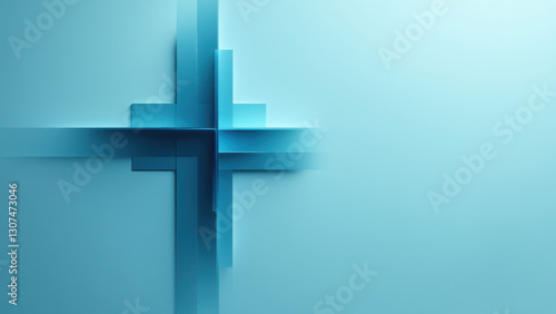© Tameem, Naklejka premium A digital art representation of a cross against a blue background.
