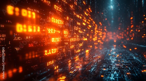 Obraz premium A digital blockchain transaction tunnel, glowing numbers and encrypted blocks...