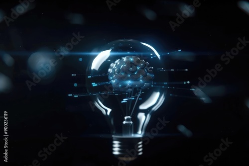 Fototapeta premium A Digital Brain Inside a Glowing Light Bulb