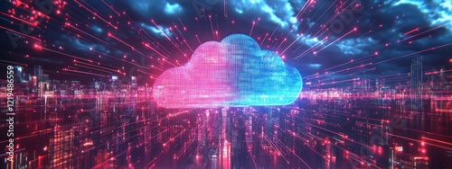 © BARRAN, Obraz premium A digital cloud representation with vibrant colors and data streams, symbolizing technology.