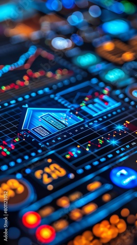 Fototapeta premium A digital composite image of a futuristic control panel with a house icon in...