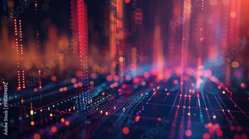 © buraratn, Obraz premium A digital graph with Bitcoin symbols, representing cryptocurrency market trends.