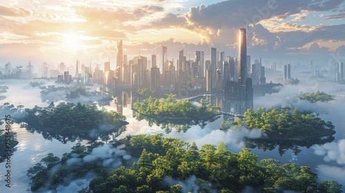 Obraz premium A digital graphic of a futuristic city with sustainable technologies...