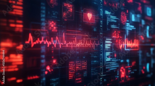 © addymawy, Obraz premium A Digital Heartbeat Monitor Display with Heart Icon and Data