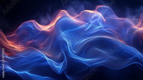 © TheGoldTiger, Fototapeta premium A digital illustration depicts a wavy, glowing blue fabric-like structure with red highlights and smoky background