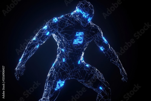 Fototapeta premium A digital illustration of a mysterious person set in a futuristic theme. The person appears enigmatic and futuristic in style.