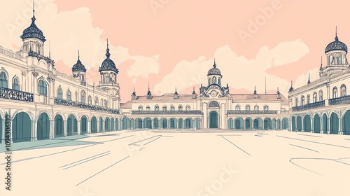 © Trionorejo, Obraz premium A digital illustration of an ornate architectural courtyard with domes and decorative elements.
