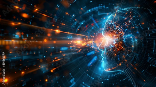 Obraz premium A digital image of a person's head illuminated by a sideward radiant light