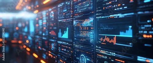© VINA, Obraz premium A digital interface displaying data analytics and graphical visualizations.