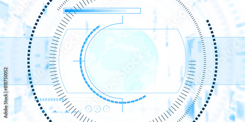 © Who is Danny, Obraz premium A digital interface with a world map and various data elements, set on a light blue technological background, conveying global connectivity
