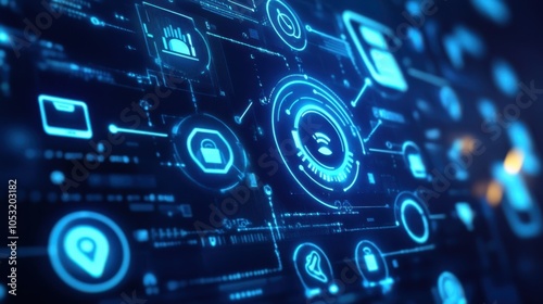 © Chatchanan, Obraz premium A digital interface with floating icons representing various online customer support