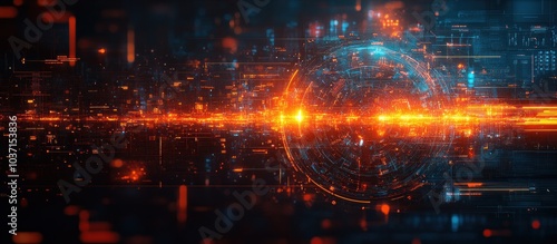 Fototapeta premium A digital landscape featuring glowing lines and spherical elements, evoking a...