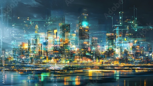 © Mr image, Fototapeta premium 51. A digital landscape showcasing smart cities and technology