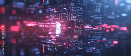 Fototapeta premium A digital lock amidst a network of data, symbolizing cybersecurity and data protection.
